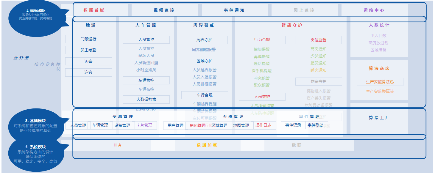 “行为分析解决方案”主要集成了设备监控、环境监控、能源监控、人员监控、数据分析和报告等多维度监控,是一个全面、高效、安全的监控管理方案,可以帮助企业提高运营效率、降低成本、增强安全性。